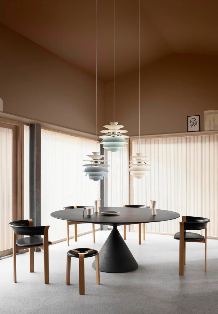 Závěsné svítidlo SNOWBALL od Louis Poulsen, stejně jako všechna klasická svítidla PH, využívá systém tří stínidel vyvinutý ve 20. letech 20. století, který jemně rozptyluje světlo a vytváří rovnoměrné, příjemné osvětlení.